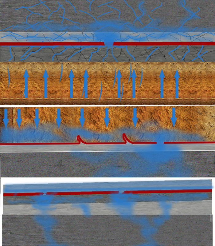 1. 底板設(shè)計缺陷:防水層與結(jié)構(gòu)底板間的保護層容易發(fā)生竄水,防水層出現(xiàn)缺陷后,滲漏水會沿著保護層間隙擴散,導(dǎo)致底板出現(xiàn)大面積滲漏水,難以根治滲漏隱患。