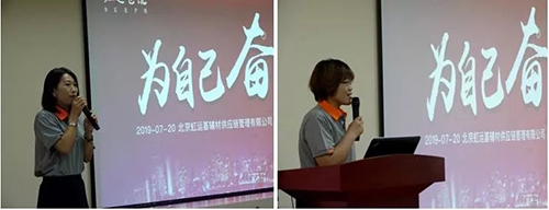 員工代表郝小紅女士、耿俊芳女士相繼發(fā)言,她們表示,愿充分發(fā)揮主人翁意識,從我做起、忘我拼搏,不拋棄、不放棄,堅定不移與虹運共同成長。