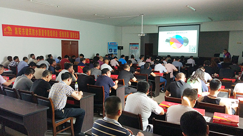 為進(jìn)一步增強(qiáng)建筑工程管理力度,適應(yīng)新規(guī)范要求,日前,山東省海陽市質(zhì)量工程監(jiān)督站舉辦防水工程施工質(zhì)量治理培訓(xùn)會(huì)議。海陽市建設(shè)、監(jiān)理、施工等單位共120余名代表參加會(huì)議,東方雨虹應(yīng)邀出席。