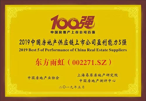 東方雨虹榮獲2019中國房地產供應鏈上市公司盈利能力五強