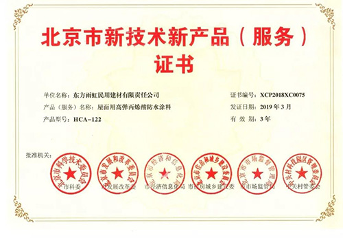 近日,雨虹防水自主研發(fā)生產(chǎn)的三款產(chǎn)品HCA-122屋面用高彈丙烯酸防水涂料、雨虹300自修復(fù)型防水涂料、L100靚縫劑獲得北京市科學(xué)技術(shù)委員會(huì)、北京市發(fā)展和改革委員會(huì)、北京市經(jīng)濟(jì)和信息化局、北京市住房和城鄉(xiāng)建設(shè)委員會(huì)、北京市市場監(jiān)督管理局、中關(guān)村科技園區(qū)管理委員會(huì)等聯(lián)合頒發(fā)的《北京市新技術(shù)新產(chǎn)品(服務(wù))證書》。