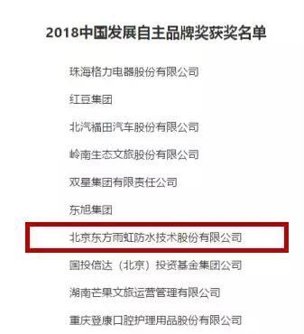 東方雨虹榮獲2018中國(guó)發(fā)展自主品牌獎(jiǎng)