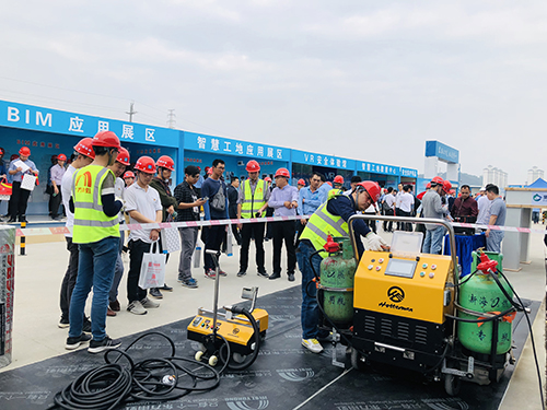 期間,東方雨虹的技術(shù)人員現(xiàn)場(chǎng)展示了常用防水產(chǎn)品、維修專用TPO、防水系統(tǒng)模型等,重點(diǎn)介紹了“虹人坦途”智能型熱熔防水卷材攤鋪機(jī)車,并現(xiàn)場(chǎng)烘烤防水卷材,展示了優(yōu)秀的建筑防水滿粘工藝及其施工效果,使得與會(huì)人員更加直觀認(rèn)識(shí)“虹人坦途”攤鋪機(jī)車的優(yōu)異性能和有效運(yùn)用。