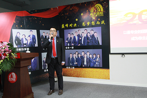 四川東方雨虹總經理助理何英女士首先以數據總結分析了2017年四川公司取得的進步、存在的不足和及今后的改進措施。總工程師郭曉樂先生針對標準化施工、系統化服務做了工作匯報,他肯定了技術、成本、工程、安質版塊取得的成績,并對未來四川、重慶市場的標準化施工充滿期待。總經理張帆先生作“提檔加速 贏在當下”的主題報告,他表示2018年要以合伙、合作協同為主要經營方式,并針對集采客戶拓展、合伙人開發方面提出了要求。