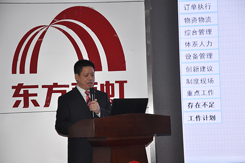 東方雨虹集團副總裁陳永初發表講話,他希望全體員工在牢記安全的前提下,按章作業,全面完成領導安排的各項任務,助力公司再創新高。