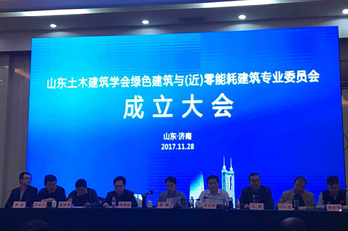 11月28日,山東土木建筑學會綠色建筑與(近)零能耗建筑專業委員會(以下簡稱專委會)成立大會在山東濟南召開。江蘇臥牛山公司作為委員單位受邀參加此次會議。會議由山東土木建筑學會常務副秘書長崔洪濤先生主持。