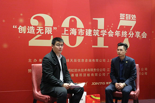 會后,上海東方雨虹市場總監張治勇接受天辰建設網的專訪,就建筑滲漏現狀、企業社會責任、東方雨虹未來五年的發展計劃等問題進行一一解答。東方雨虹的專業技術得到了建筑學會、參會設計師們的一致肯定和贊許。