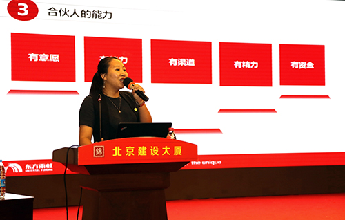 接著,市場部戰略客戶經理曲博南詳細介紹了東方雨虹合伙人制度,并解讀了相關的招募政策。
