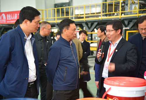 岳陽(yáng)東方雨虹廠長(zhǎng)向鋒帶領(lǐng)考察組參觀了生產(chǎn)基地水性涂料車間和高分子卷材車間,詳細(xì)匯報(bào)了東方雨虹及岳陽(yáng)生產(chǎn)基地的總體經(jīng)營(yíng)情況,并講解了公司主要產(chǎn)品的生產(chǎn)工藝、產(chǎn)品優(yōu)勢(shì)及重大工程應(yīng)用情況。