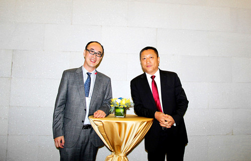 東方雨虹防水集團(tuán)總裁劉斌(右)與萬(wàn)科集團(tuán)建筑研究與工程采購(gòu)中心助理總經(jīng)理都軍(左)合影