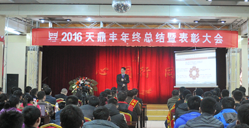 1月7日,天鼎豐在臨邑縣萬力大酒店召開以“志存高遠,永遠在路上”為主題的年終總結會議,會議全面總結了2016年公司各項工作所取得的成果,并對 2017年公司總體發展戰略及各部門工作進行了部署。 天鼎豐董事長聶松林作了題為《2016年工作總結暨2017年工作部署》的報告。2016年,天鼎豐各項經濟指標完成良好,提前完成年度既定銷售目標,產品質量保持穩步提升,合格品率實現從優到精的突破;長絲車間噸能耗比2015年大幅減少;子公司的聚丙烯材料生產線順利完成安裝調試工作,所產高強粗旦聚丙烯紡粘針刺土工布各項指標滿足標準要求,部分指標優于國外進口產品,實現技術突破。另外,1#、6#車間及天鼎豐(滁州)的建設工作也有條不紊。