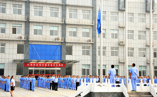 8月18日,天鼎豐迎來了5周年的生日,公司舉行了隆重的慶典活動,共同慶祝天鼎豐公司成立五周年。 公司300余名員工共同見證了這一重要時刻。慶典活動于6點58分開始,鳴禮炮、奏國歌、司歌,全體人員在國旗、司旗下行注目禮。隨后,天鼎豐董事長聶松林發表五周年致詞,回顧了天鼎豐過去5年來的發展歷程:“五年來,天鼎豐從一片荒蕪之地建設成為胎基布行業突出企業,公司的團隊建設、品牌建設、人力資源建設、市場外聯、社會責任等基礎工作都非常突出;設備管理、現場管理、成本管理、產品質量等都走在了行業的前列。公司的飛速發展離不開全體員工的辛勤工作,離不開員工家屬的默默支持,更離不開供應商、客戶以及各級政府和社會各界朋友的鼎力相助,在此要表達對大家的衷心感謝,是大家的不懈努力,成就了今天的天鼎豐。”