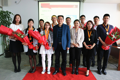上海公司1季度銷售業績相比去年同期有一定幅度增長,這離不開銷售精英的突出表現。為表彰優秀,鼓勵業務員工向榜樣學習,傳遞正能量,本次頒獎會頒發了分司齡段超額完成任務的銷售精英獎、以及業務新人簽單排名前三甲的銷售新秀獎,共計10名員工(其中2名獲雙料獎)受到嘉獎。 銷售明星踏上紅毯,領取榮譽獎章,發表獲獎感言,回顧了自己在雨虹的成長歷程,重要的是感謝前輩同事以及領導對自己的指導幫助。會上,我們特邀2名獲獎者深入分享了自己操作項目的經驗心得,供其他同事尤其是新業務員溝通學習。 上海東方雨虹總經理方世畢、副總經理王國朝、總經理助理王晴分別為獲獎者頒獎,對業務人員的辛勤付出表示肯定和鼓勵,總經理方世畢倡導所有業務員要像獲獎者學習,學習他們的韌勁和堅持,同時借此機會給在座的業務人員分享了成功操作項目的秘訣,以及成為優秀業務員需具備的素質;最后,他希望全體業務員能借助東方雨虹的平臺虹成就自己的事業,期盼新業務員盡快融入和成長。