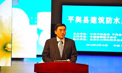 平輿縣委書記張懷德致辭:平輿縣20多萬人從事防水產業,年產值160多億。
