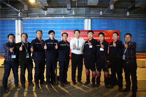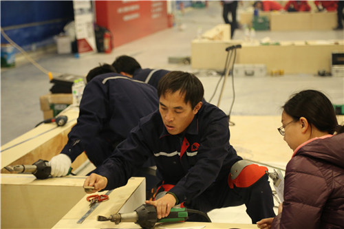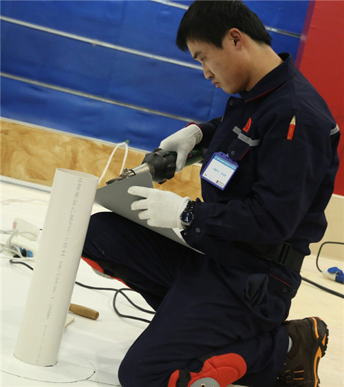 比賽現場,徐龍瀟進行管根節點處理