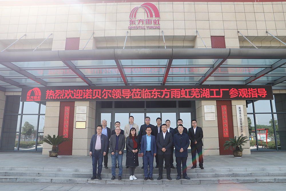 蕪湖東方雨虹廠長曹雪詳細(xì)介紹了產(chǎn)業(yè)園的建設(shè)、市場拓展情況。諾貝爾瓷磚團(tuán)隊(duì)充分肯定和贊賞了東方雨虹的產(chǎn)品、質(zhì)量、服務(wù),同時(shí)深入蕪湖東方雨虹生產(chǎn)現(xiàn)場參觀,了解東方雨虹的自動(dòng)化的智能制造水平、精細(xì)化的生產(chǎn)操作。