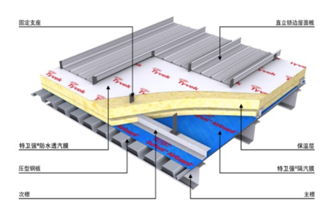 特衛(wèi)強®防水透汽膜/隔汽膜適用于機場、火車站、公共場館、商業(yè)中心、辦公樓、工業(yè)廠房、冷庫、住宅等領(lǐng)域的屋面和墻面。包括金屬屋面系統(tǒng)、干掛面板幕墻系統(tǒng)、木結(jié)構(gòu)/輕鋼結(jié)構(gòu)住宅墻面屋面、瓦屋面、冷庫及低能能建筑等領(lǐng)域。
