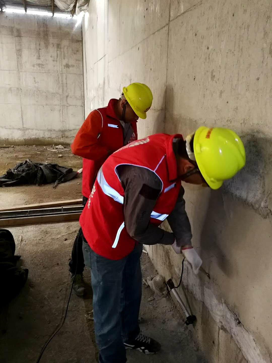 灌漿針頭需要取出,用堵漏2#進行孔洞封堵。灌漿針頭為鋁制品。如果殘留在墻體內部,由于其和混凝土的熱脹冷縮系數不同,將來容易在針頭針頭周邊因為溫度應力形成裂縫。