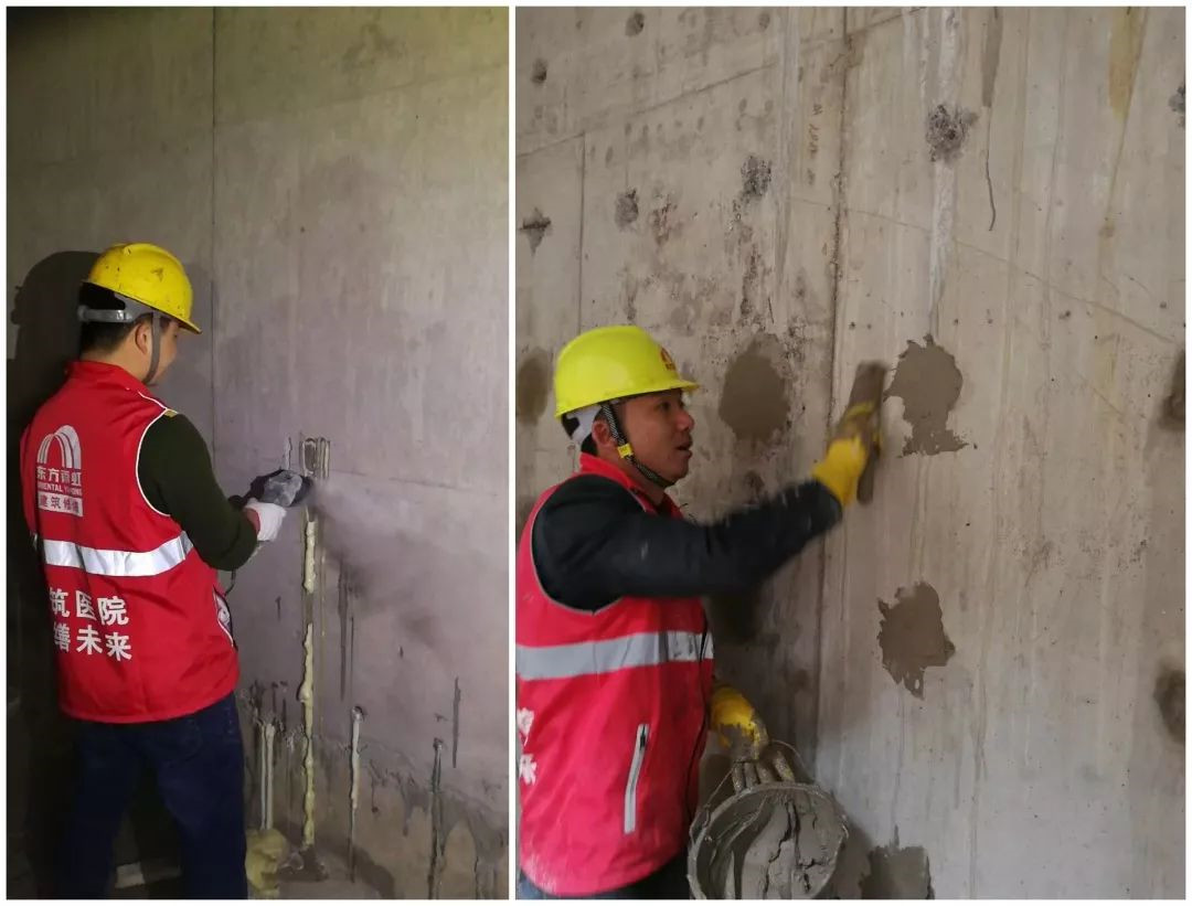 背防作業(yè)之后,待抗?jié)B1#完全起強度后,需要打磨作業(yè),恢復表面的平整度,為后續(xù)的飾面處理做好準備。