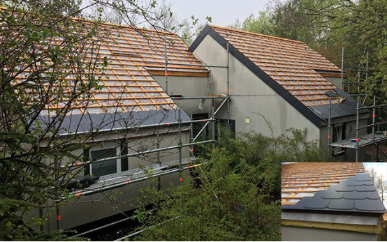 位于比利時阿登高原(Ardennes)的維爾雅爾姆地區(qū)(Vielsalm)有著大面積的天然森林以及山谷景觀,綠意盎然,空氣清新,是徒步愛好者和自行車愛好者的勝地,因此被稱為比利時的"綠肺"。為了更好地保護當(dāng)?shù)刈匀画h(huán)境,該地區(qū)的開發(fā)商對建筑材料的選用有著高標(biāo)準(zhǔn)的環(huán)保要求,特衛(wèi)強®加強型透汽膜憑借其優(yōu)良的氣密性、耐久性及施工便捷性,參與了該地區(qū)某度假村的350棟別墅項目的屋面翻新工程。